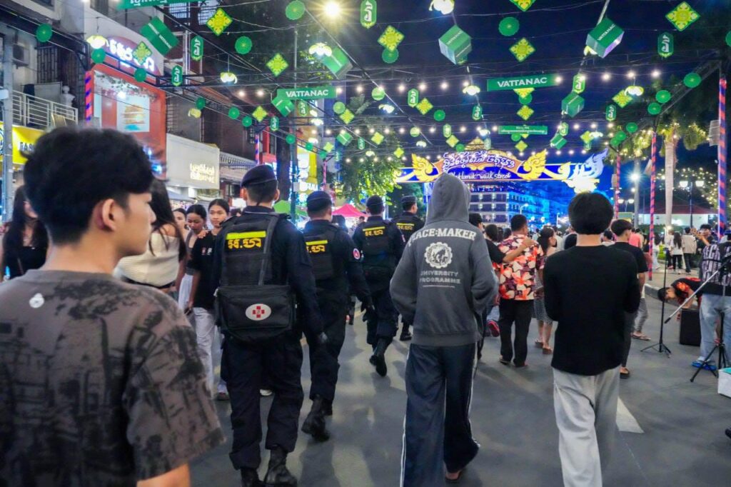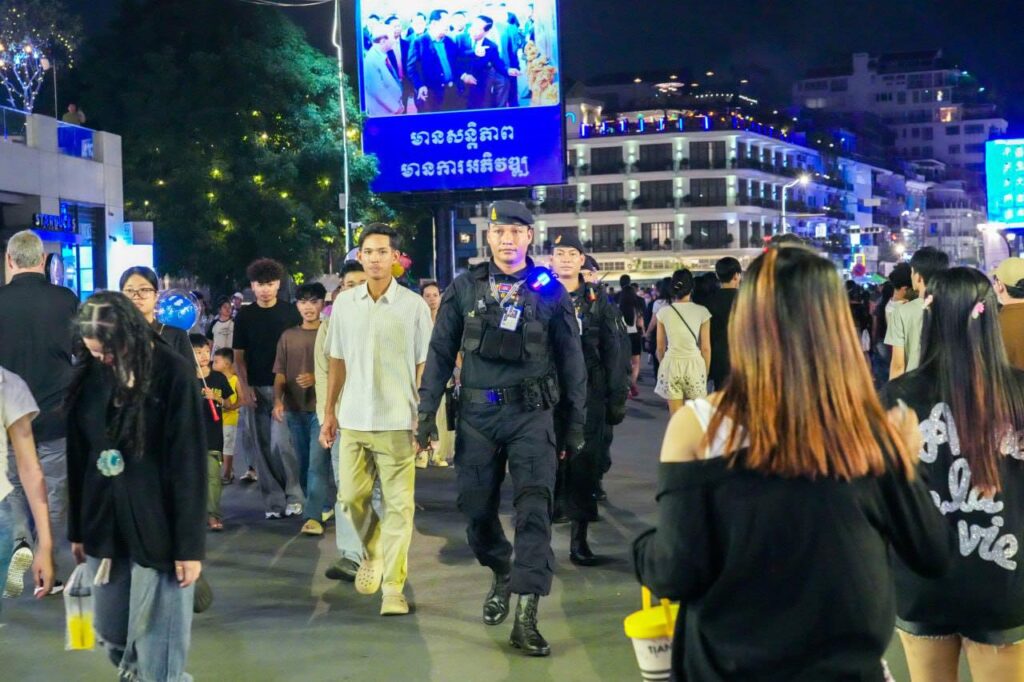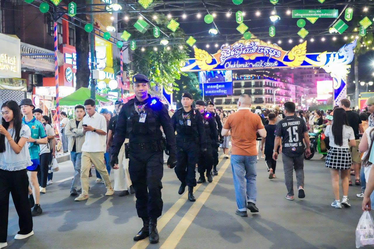 ប្រតិបត្តិការការងារបង្កា កម្លាំងកងរាជអាវុធហត្ថរាជធានីភ្នំពេញ ចូលរួមល្បាត ការពារសន្តិសុខ សុវត្ថិភាព រក្សាសណ្ដាប់ធ្នាប់ និងសង្គ្រោះបន្ទាន់ ជូនបងប្អូនប្រជាពលរដ្ឋ ធ្វើដំណើរកំសាន្ត នៅតាមដងផ្លូវថ្មើរជើង (Walk Street) ថ្ងៃទី១៨-១៩ ខែតុលា ឆ្នាំ២០២៥។ Wednesday, 22 October, 2025 9 Facebook Twitter WhatsApp Telegram LINE Viber