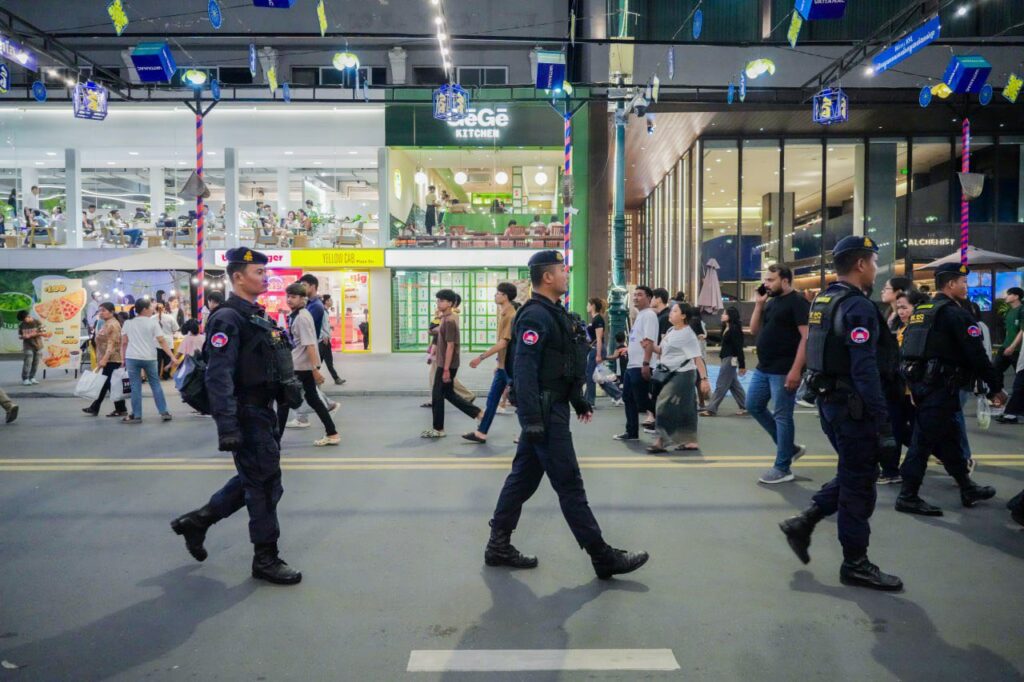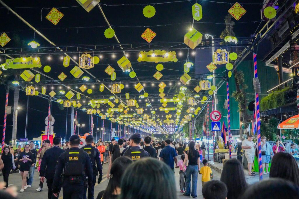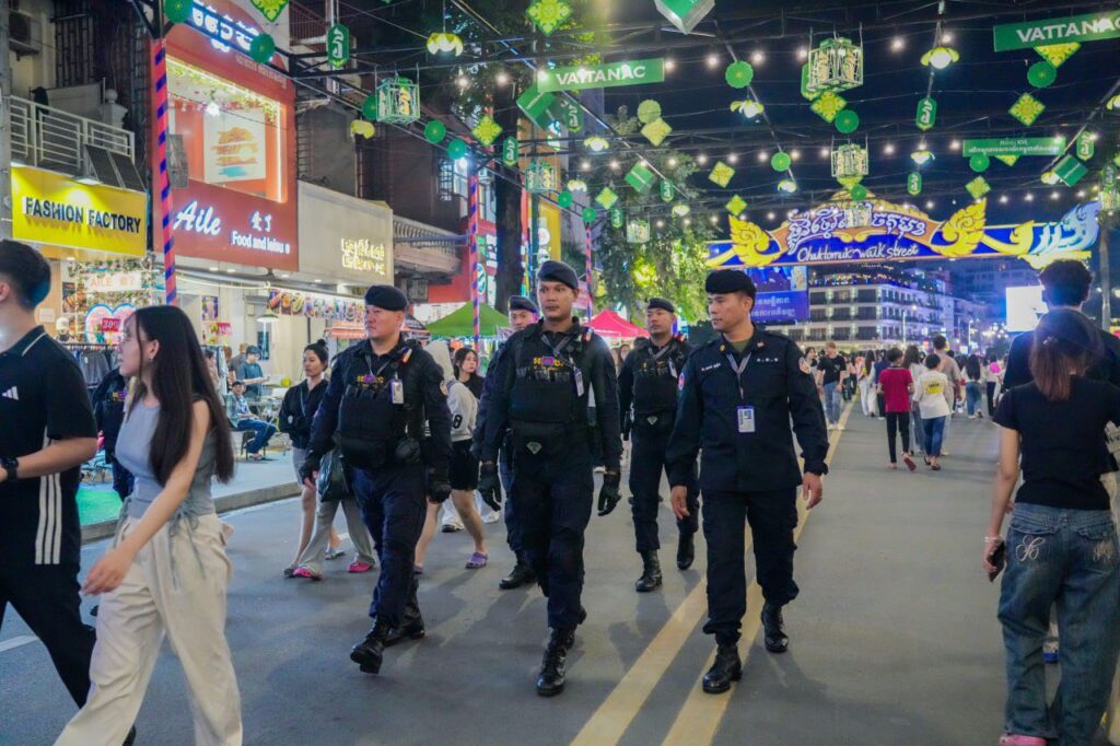 ប្រតិបត្តិការការងារបង្កា កម្លាំងកងរាជអាវុធហត្ថរាជធានីភ្នំពេញ ចូលរួមល្បាត ការពារសន្តិសុខ សុវត្ថិភាព រក្សាសណ្ដាប់ធ្នាប់ និងសង្គ្រោះបន្ទាន់ ជូនបងប្អូនប្រជាពលរដ្ឋ ធ្វើដំណើរកំសាន្ត នៅតាមដងផ្លូវថ្មើរជើង (Walk Street) ថ្ងៃទី១-២ ខែវិច្ឆិកា ឆ្នាំ២០២៥។ Thursday, 6 November, 2025 9 Facebook Twitter WhatsApp Telegram LINE Viber