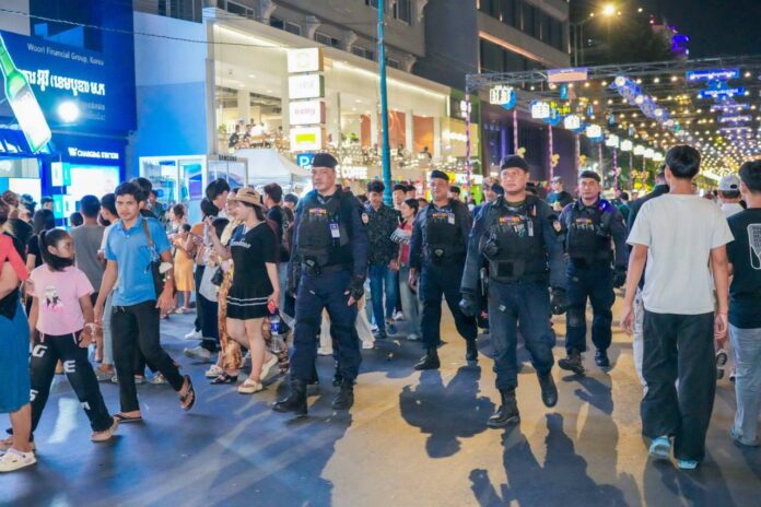 កម្លាំងកងរាជអាវុធហត្ថរាជធានីភ្នំពេញ ចូលរួមល្បាត ការពារ​សន្តិសុខ​ សុវត្ថិភាព​ រក្សាសណ្ដាប់​ធ្នាប់​ និងសង្គ្រោះបន្ទាន់ ​ជូន​បងប្អូន​ប្រជាពលរដ្ឋ​ ធ្វើដំណើរកំសាន្ត នៅតាមដងផ្លូវថ្មើរជើង (Walk Street) ថ្ងៃទី២៥-២៦ ខែមេសា ឆ្នាំ២០២៦។