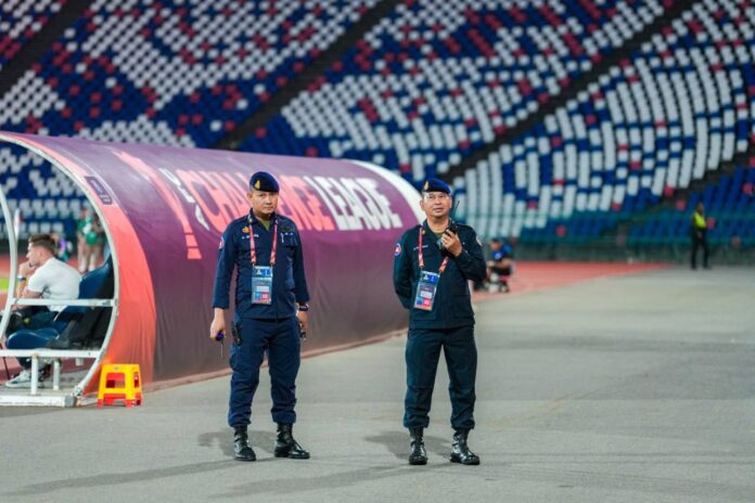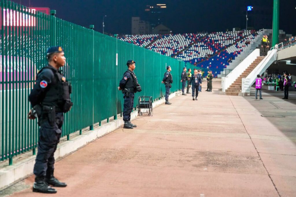 ប្រតិបត្តិការការងារបង្កា កម្លាំងអាវុធហត្ថរាជធានីភ្នំពេញ ចូលរួមការពារ សន្តិសុខ រក្សាសណ្តាប់ធ្នាប់ ក្នុងការប្រកួតបាល់ទាត់ជើងឯកក្លឹបលំដាប់ទី៣អាស៊ី (AFC Challenge League) វគ្គ១/៤ផ្ដាច់ព្រ័ត្រ៖ រវាងក្រុមភ្នំពេញក្រោន vs ព្រះខ័នរាជស្វាយរៀង នាយប់ ថ្ងៃទី៥ ខែមីនា ឆ្នាំ២០២៦ នៅពហុកីឡដ្ឋានជាតិអូឡាំពិក។ Friday, 6 March, 2026 1 Facebook Twitter WhatsApp Telegram LINE Viber