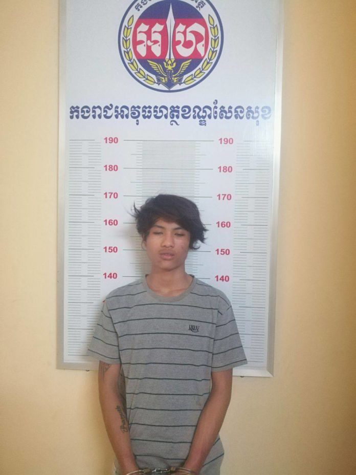 កាលពីវេលាម៉ោង១៩:៣០នាទី ថ្ងៃទី២៩ ខែតុលា ឆ្នាំ២០១៧ នៅចំណុចជាប់ផ្សាររតនាផ្លាហ្សា ភូមិចុងថ្នល់ខាងកើត សង្កាត់ទឹកថ្លា ខណ្ឌសែនសុខ កម្លាំងមូលដ្ឋានអាវុធហត្ថខណ្ឌសែនសុខ បានបង្ក្រាប និងឃាត់ខ្លួនជនសង្ស័យ ០១នាក់ ជាចោរលួចកាច់ (ក) ម៉ូតូ។ ជនសង្ស័យដែលអាវុធហត្ថឃាត់ខ្លួន ឈ្មោះ យ៉ាន់ ម៉េងឈាង ភេទប្រុស អាយុ ១៧ឆ្នាំ ត្រូវបានសមត្ថកិច្ចអាវុធហត្ថឃាត់ខ្លួនបន្ទាប់ពីជនសង្ស័យខាងលើ បានធ្វើសកម្មភាពលួចកាច់ (ក) ម៉ូតូ ០១គ្រឿងម៉ាក SUZUKI NEX ពណ៌ស សេរីឆ្នាំ២០១៣ ស្លាកលេខ1FQ-2453 ជារបស់ជនរងគ្រោះ ឈ្មោះ ឡៃ ទិត្យសាត ភេទប្រុស អាយុ ៣៧ឆ្នាំ។