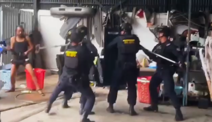 នៅវេលាម៉ោង១៨:០០នាទី ថ្ងៃទី០២ ខែសីហា ឆ្នាំ២០២៤ នៅចំណុចយានដ្ឋានជួសជុលរថយន្តមួយកន្លែង ស្ថិតនៅសង្កាត់ស្រះចក ខណ្ឌដូនពេញ រាជធានីភ្នំពេញ មានករណីបុរសម្នាក់ ប្រើប្រាស់កាំបិតប៉័ងតោ និងដែកទីប ធ្វើការគំរាមកំហែងទៅលើអ្នកដទៃ បង្កឲ្យមានការភ័យខ្លាច ប៉ុន្តែមិនបានបណ្ដាលឲ្យមាននរណាម្នាក់រងរបួសនោះឡើយ។ បន្ទាប់ពីមានប្រជាពលរដ្ឋបានផ្តល់ព័ត៌មានមកកាន់ កងរាជអាវុធហត្ថរាជធានីភ្នំពេញ តាមរយៈលេខទូរស័ព្ទបន្ទាន់ ១២៩១ ដើម្បីសុំកិច្ចអន្តរាគមន៍ ភ្លាមៗនោះ កម្លាំងគ-អន្តរាគមន៍ កងរាជអាវុធហត្ថរាជធានីភ្នំពេញ បានចុះអន្តរាគមន៍ដល់កន្លែងកើតហេតុ ប៉ុន្តែជនសង្ស័យមិនព្រមសហការដោយមានកាំបិតជាប់នឹងខ្លួន និងកាន់ដំបងទីបគ្រវីគំរាមមកលើសមត្ថកិច្ចអាវុធហត្ថថែមទៀត ទើបកម្លាំងអាវុធហត្ថរាជធានីភ្នំពេញ ប្រើបច្ចេកទេស និងសម្ភារៈ ដែលច្នៃប្រឌិតដោយខ្លួនឯង ធ្វើការឃាត់ខ្លួនបុរសបែកថ្នាំម្នាក់នោះ បញ្ជូនទៅកាន់ទីបញ្ជាការកងរាជអាវុធហត្ថរាជធានីភ្នំពេញ ដើម្បីចាត់ការតាមនីតិវិធី។ ជនសង្ស័យ ឈ្មោះ ទុំ វណ្ណា ហៅ អូន ភេទប្រុស អាយុ ៤២ឆ្នាំ ត្រូវបានកម្លាំងជំនាញនៃការិយាល័យប្រឆាំងគ្រឿងញៀន កងរាជអាវុធហត្ថរាជធានីភ្នំពេញ ធ្វើតេស្តទឹកនោមរកឃើញជាប់សារធាតុញៀន ដែលអាចសន្និដ្ឋានបានថា ប្រហែលបុរសរូបនេះ ប្រើប្រាស់គ្រឿងញៀនលើសកម្រិត ទើបធ្វើឲ្យបាត់បង់ស្មារតី (បែកថ្នាំ) ទើបបញ្ចេញអាកប្បកិរិយាគម្រាមកំហែងបំភិតបំភ័យអ្នកដ៏ទៃយ៉ាងដូច្នេះ៕