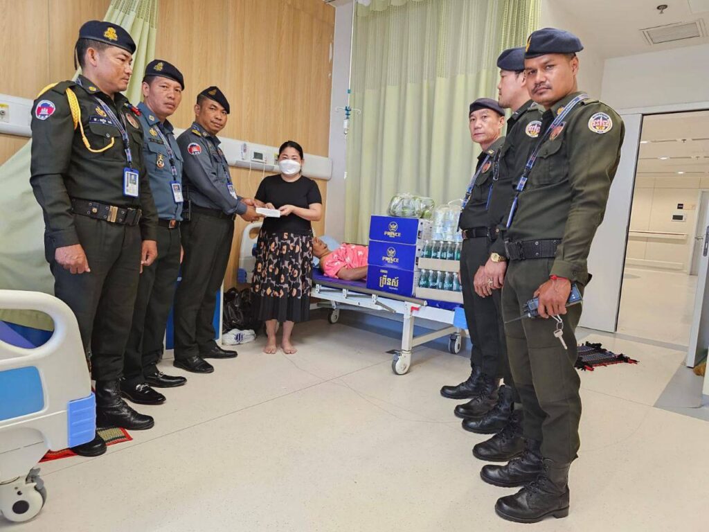 ដោយឡែក នៅរសៀល ថ្ងៃទី០៥ ខែវិច្ឆិកា ឆ្នាំ២០២៣ លោកវរសេនីយ៍ឯក សរ សុភ័ណ្ឌ មេបញ្ជាការ មូលដ្ឋានអាវុធហត្ថខណ្ឌដង្កោ បានដឹកនាំក្រុមការងារ នាំយកថវិកា និងអំណោយរបស់លោកឧត្តមសេនីយ៍ឯក រ័ត្ន ស្រ៊ាង មេបញ្ជាការរង កងរាជអាវុធហត្ថលើផ្ទៃប្រទេស មេបញ្ជាការ កងរាជអាវុធហត្ថរាជធានីភ្នំពេញ មានដូចជា ថវិកាចំនួន ២លានរៀល, ទឹកក្រូចដប ០២កេស, ទឹកសុទ្ទ ០៣កេស, ទឹកដោះគោឆៅ០២យួរ, ផ្លែក្រូចពោធិ៍សាត់ចំនួន ២ឡូ ចុះសួរសុខទុក្ខ លោកអនុសេនីយ៍ទោ យិន ចំរ៉ុង ដែលបានជួបគ្រោះថ្នាក់ចរាចរណ៍នៅពេលកំពុងបំពេញភារកិច្ចបង្រ្កាបករណីខាងលើ ហើយកំពុងសម្រាកព្យាបាលនៅមន្ទីរពេទ្យមិត្តភាពកម្ពុជា-ចិន ព្រះកុសុមៈ (ហៅពេទ្យលោកសង្ឃ) ដោយលោកឧត្តមសេនីយ៍ឯក រ័ត្ន ស្រ៊ាង ជាអ្នករ៉ាប់រងលើថ្លៃព្យាបាលទាំងស្រុងផងដែរ៕