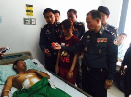ឧត្តមសេនីយ៍ឯក រ័ត្ន ស្រ៊ាង នាំយកថវិកា 5,000$ ជូនដល់នាយអាវុធហត្ថរាជធានីភ្នំពេញ ដែលកំពុងសម្រាកព្យាបាលនៅមន្ទីរពេទ្យកាល់ម៉ែត!