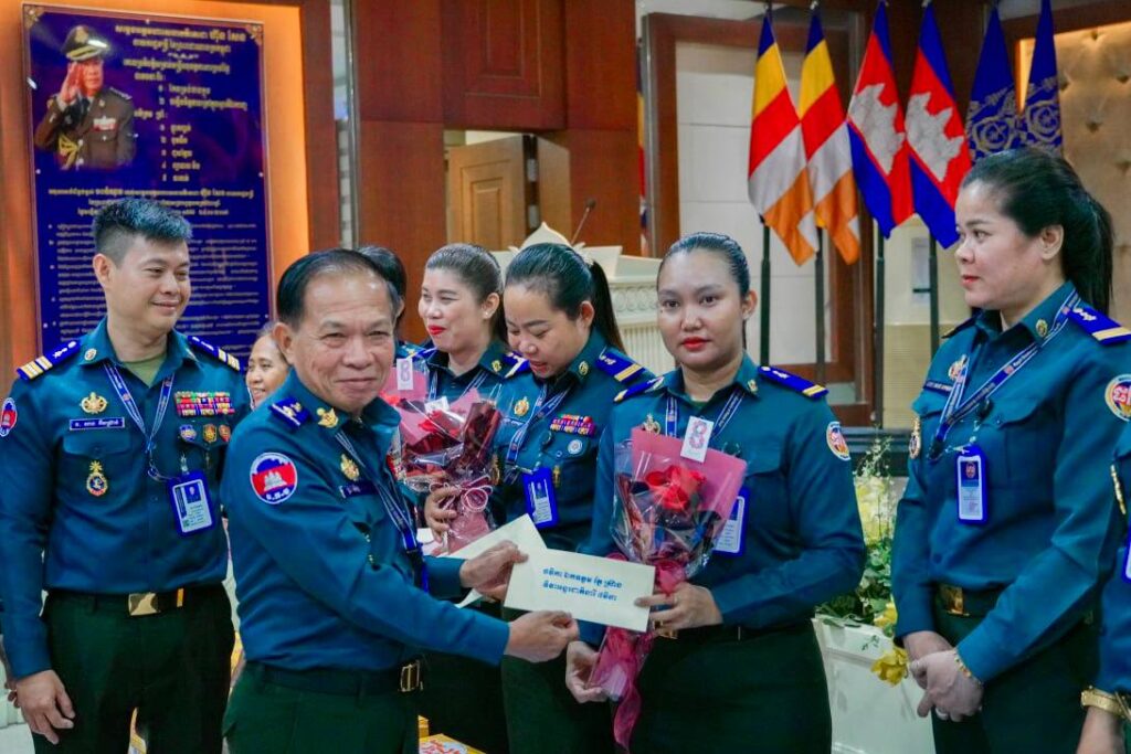 នាព្រឹក ថ្ងៃទី០៥ ខែមីនា ឆ្នាំ២០២៦ នៅបញ្ជាការដ្ឋាន កងរាជអាវុធហត្ថរាជធានីភ្នំពេញ លោកឧត្តមសេនីយ៍ត្រី ច័ន្ទ វាសនា មេបញ្ជាការរង កងរាជអាវុធហត្ថរាជធានីភ្នំពេញ ទទួលការងារកសាងកម្លាំង តំណាង លោកឧត្តមសេនីយ៍ឯក រ័ត្ន ស្រ៊ាង មេបញ្ជាការរង កងរាជអាវុធហត្ថលើផ្ទៃប្រទេស ជាមេបញ្ជាការ កងរាជអាវុធហត្ថរាជធានីភ្នំពេញ បានជួបសំណេះសំណាល ជាមួយអាវុធហត្ថនារី នៃកងរាជអាវុធហត្ថរាជធានីភ្នំពេញ និងបុគ្គលិកនារីបម្រើការងារក្នុងអង្គភាព សរុប២៨នាក់ ព្រមទាំងបាននាំយកអំណោយអនុស្សាវរីយ៍របស់ លោកឧត្តមសេនីយ៍ឯក រ័ត្ន ស្រ៊ាង ប្រគល់ជូនដល់នារីទាំង២៨នាក់ ដើម្បីសម្តែងការអបអរសាទរ ខួបលើកទី១១៥ ទិវាអន្តរជាតិនារី ៨មីនា ឆ្នាំ២០២៦ ក្រោមប្រធានបទ “សន្តិភាព និងសន្តិសុខសម្រាប់ស្ត្រី និងគ្រួសារ”។