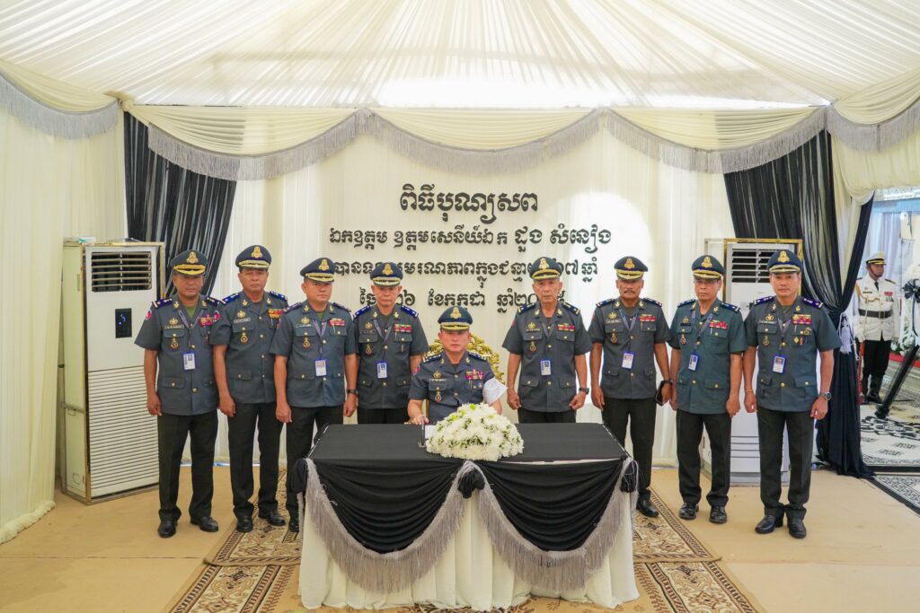 ឯកឧត្តម ឧត្តមសេនីយ៍ឯក រ័ត្ន ស្រ៊ាង មេបញ្ជាការរង កងរាជអាវុធហត្ថលើផ្ទៃប្រទេស មេបញ្ជាការ កងរាជអាវុធហត្ថរាជធានីភ្នំពេញ ព្រមទាំង នាយទាហាន នាយទាហានរង និងពលទាហាន នៃកងរាជអាវុធហត្ថរាជធានីភ្នំពេញ សូមចូលរួមរំលែកទុក្ខដ៏ក្រៀមក្រំបំផុត ជាមួយ លោកស្រី អ៊ុក ស៊ុនរ៉ានី ព្រមទាំងក្រុមគ្រួសារ ដែលបានបាត់បង់ ឯកឧត្តម ឧត្តមសេនីយ៍ឯក ដួង សំនៀងឯកឧត្តម ឧត្តមសេនីយ៍ឯក រ័ត្ន ស្រ៊ាង មេបញ្ជាការរង កងរាជអាវុធហត្ថលើផ្ទៃប្រទេស មេបញ្ជាការ កងរាជអាវុធហត្ថរាជធានីភ្នំពេញ ព្រមទាំង នាយទាហាន នាយទាហានរង និងពលទាហាន នៃកងរាជអាវុធហត្ថរាជធានីភ្នំពេញ សូមចូលរួមរំលែកទុក្ខដ៏ក្រៀមក្រំបំផុត ជាមួយ លោកស្រី អ៊ុក ស៊ុនរ៉ានី ព្រមទាំងក្រុមគ្រួសារ ដែលបានបាត់បង់ ឯកឧត្តម ឧត្តមសេនីយ៍ឯក ដួង សំនៀង មេបញ្ជាការកងពលតូចអន្តរាគមន៍លេខ៧ កងពលធំអន្តរាគមន៍លេខ៣ ដោយពលីក្នុងជន្មាយុ ៦៧ឆ្នាំ ក្នុងបុព្វហេតុការពារបូរណភាពទឹកដី កាលពីថ្ងៃសៅរ៍ ទី២៦ ខែកក្កដា ឆ្នាំ២០២៥ នៅសមរភូមិមុខ ទិសទី១​ ខេត្តព្រះវិហារ